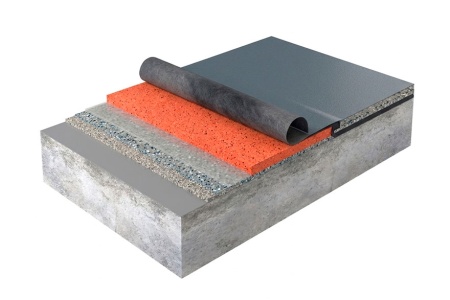 - Далее необходимо нанесение на основу грунтовки, чтобы заполнить, запечатать поры, усилить адгезию. Может быть нанесён базовый гидроизоляционный слой пола, в некоторых помещениях делают, например, водоотводящие лотки.