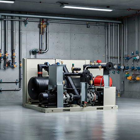 - Важно помнить о противопожарной безопасности в помещении, где находятся гидравлические модули, должна быть также защита насосной станции чиллера от протечек и погодных условий.