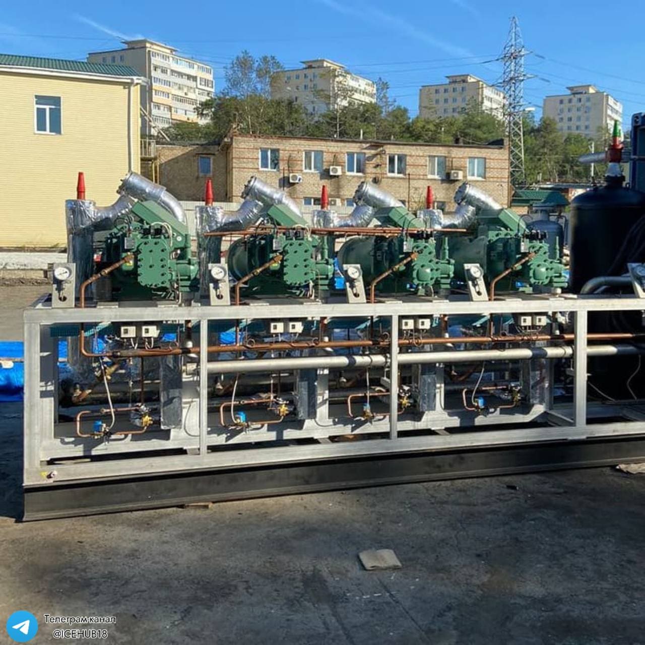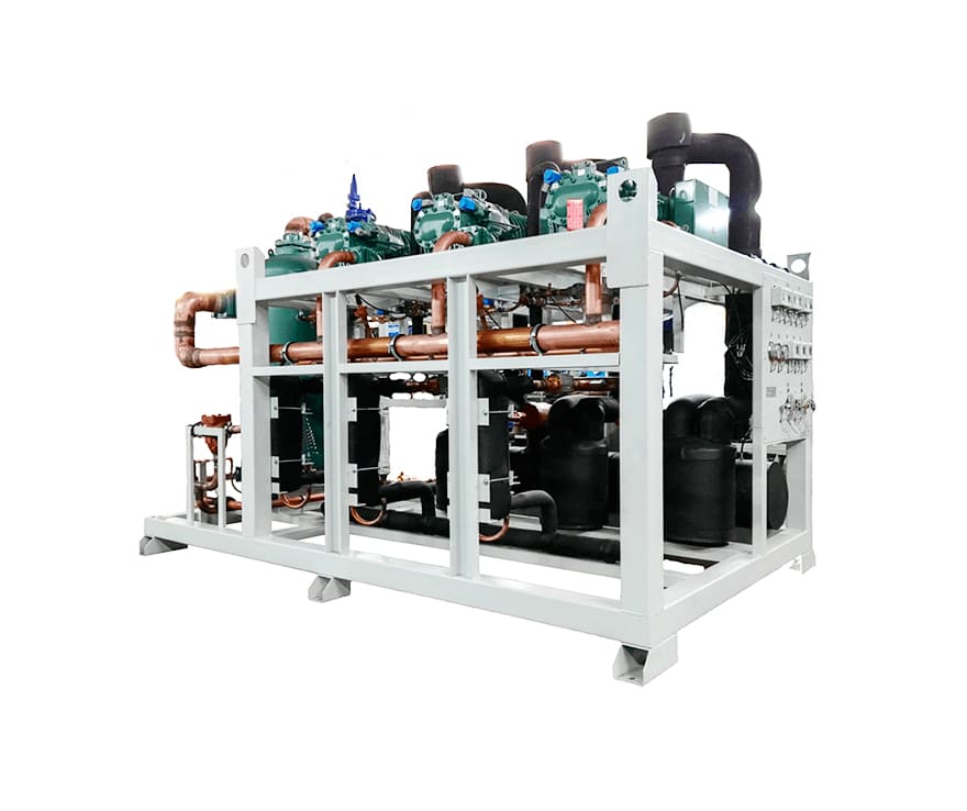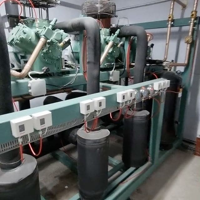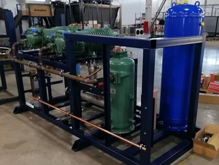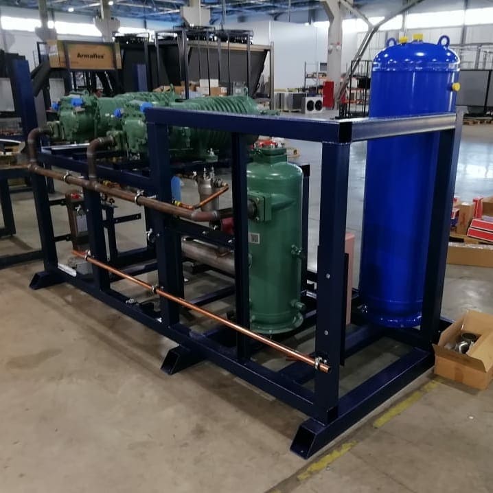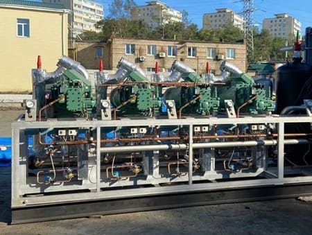 - Парокомпрессионные холодильные устройства. Это многокомпрессорные агрегаты (обычно до 8 штук). Ключевая особенность — большой температурный диапазон, в котором машина способна эффективно функционировать.