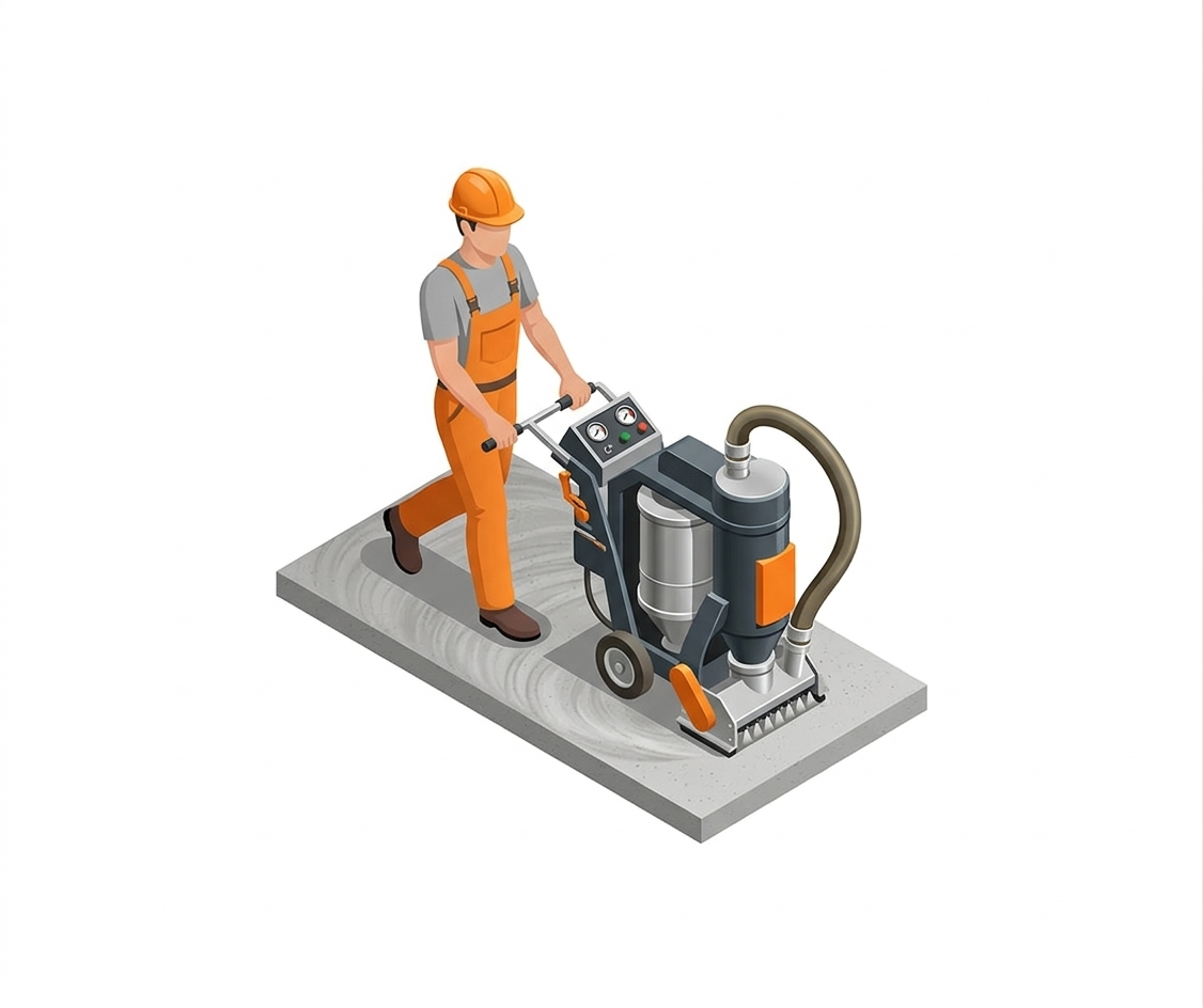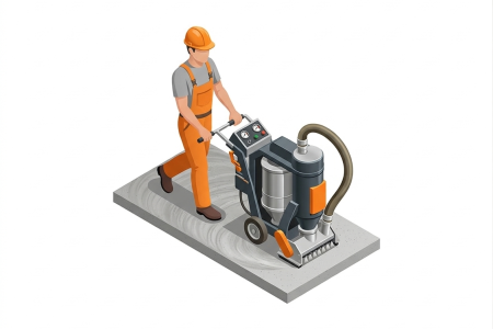 - Проводится предварительная очистка и базовая шлифовка площади. Её осуществляют для подготовки к дальнейшим бетонным работам хотя бы на 3-5 день после заливки пола (рекомендуется ждать больше). Так как любая поверхность пылит при обработке, периодически делаются паузы на очистку, чтобы не компрометировать качество.
