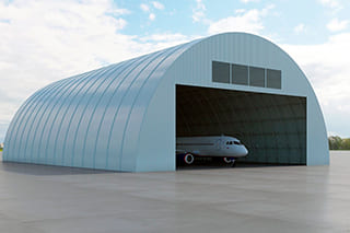 - По наличию каркаса. Возводятся ангары в каркасном и бескаркасном исполнении (арочной формы). Вторые выдерживают чуть менее высокое воздействие, зато сборные и разборные работы ними гораздо проще, можно построить прочную быстровозводимую конструкцию под технику с высочайшей скоростью.