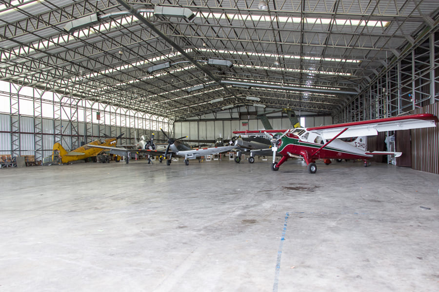 - Пол в ангаре должен быть рассчитан на вес самолета, не менее 5 тонн на м2, чаще всего используется бетонное покрытие с армированием.