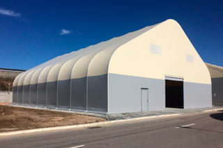 Каркасно-тентовая конструкция ангара является одним из наиболее недорогих вариантов быстровозводимого строительства, в число преимуществ которого можно добавить и минимальные сроки возведения. Это сооружение сборно-разборного типа, которое состоит из легкого стального каркаса, обтянутого тентом из ПВХ, состоящим из двух и более слоев. Покрытие выдерживает нагрузку до 350 кг на квадратный метр, обладает стойкостью в широком диапазоне температур, и является отличным вариантом для каркасно-тентового холодного склада или ангара.